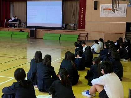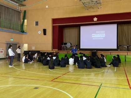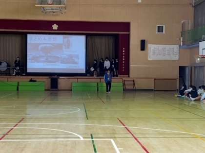 6年生の子どもたちが、講堂で明日(参観)のリハーサルをしました。