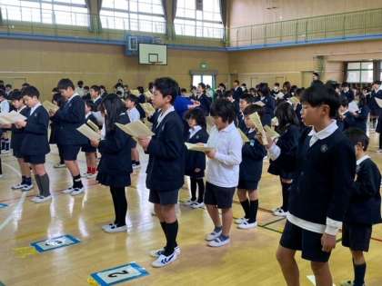 1年生から5年生の子どもたちが、声を合わせて歌の練習をしています。