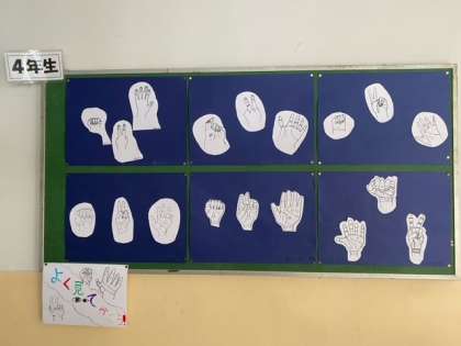 4年生は図工の作品「グー・チョキ・パー」