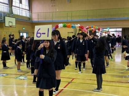 在校生が講堂に集合して、6年生の入場を拍手で迎えました。