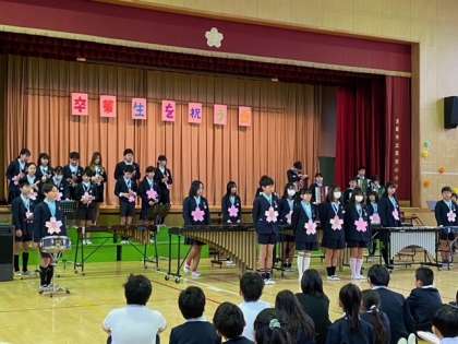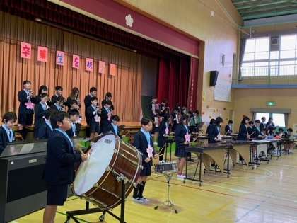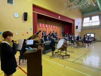 「明日はきっといい日になる」〜 素敵な演奏に在校生が聞き入っていました。