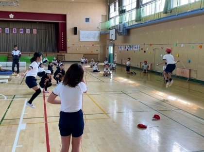 男子と女子に分かれて二重跳びのリレーもしていました。なかなかいい勝負でした。