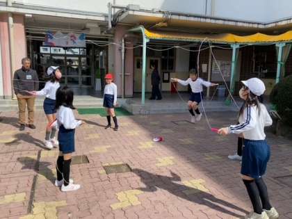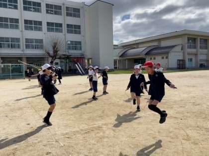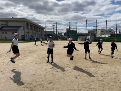5年生の子どもたちが、二重跳びやあや跳びを上手に跳んでいます。