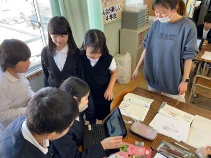グループごとに様々なテーマでアンケートを取り、その結果をグラフ化し、タブレットのパワーポイント機能を使って発表する予定です。