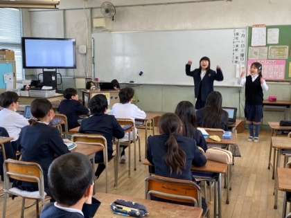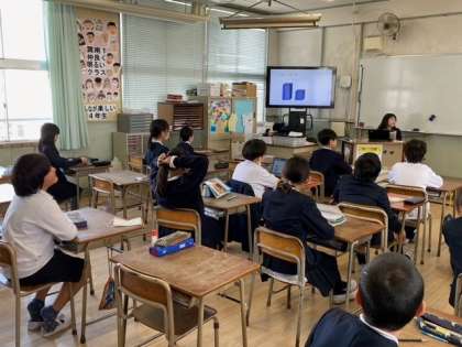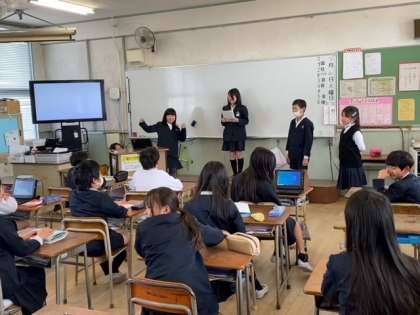 テーマごとにまとめた結果と考察を、子どもたちが興味深く見ていました。
