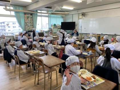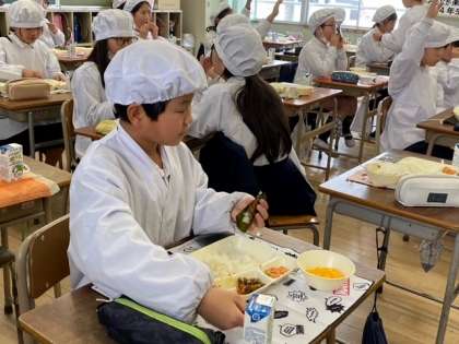 4年生の教室でも、子どもたちが「手巻きご飯」をつくっていました。