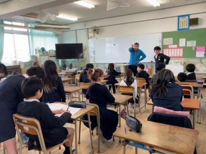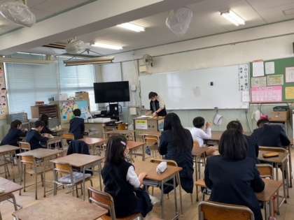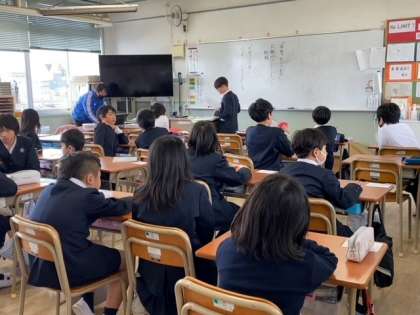 集団登校班ごとに分かれて、一年間を振り返りました。