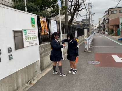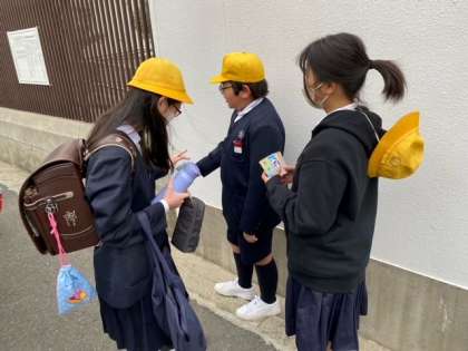 3/8 朝の登校風景(赤い羽根募金)