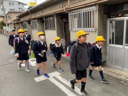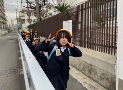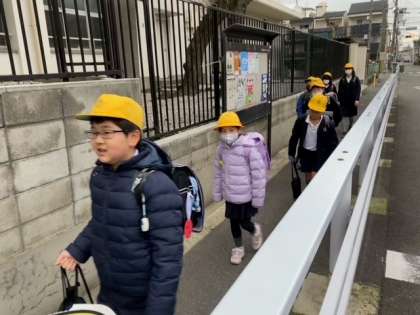 3/8 朝の登校風景(新班長を先頭に)2