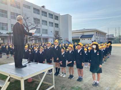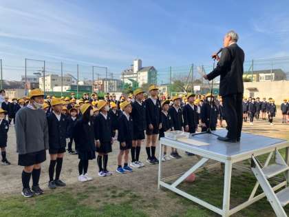 今日が、全校児童がそろう「(今年度)最後の全校朝会」となります。(来週月曜日に6年生は巽南小学校を卒業します)