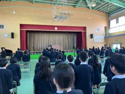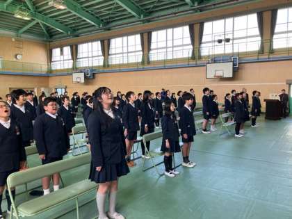 開式の言葉の後の、国歌・市歌・校歌の斉唱です。