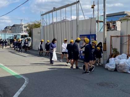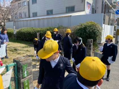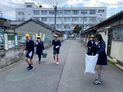 家庭科「共に生きる地域での生活」から、「お世話になった地域を掃除して感謝の気持ちを伝えよう」という「奉仕活動」です。