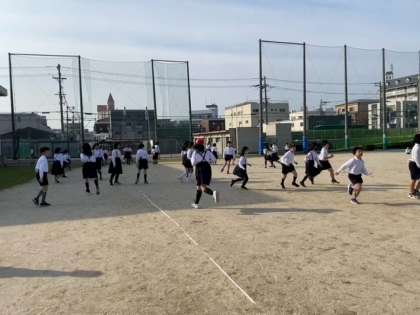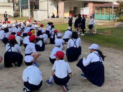 子どもたちは、上着を脱いで、縦割り班で集合しました。