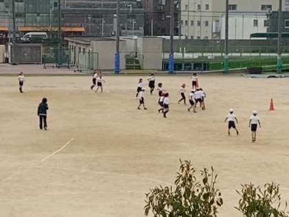 ちょうど、3年生1組の子どもたちが、運動場で体育科の学習をしていました。寒さに負けず、頑張っています。