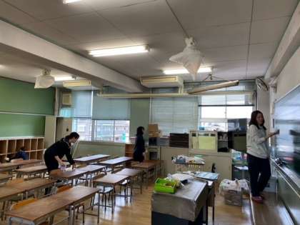 新1年生の教室も、先生たちと新6年生で「ピカピカ」にしています。