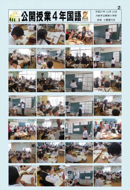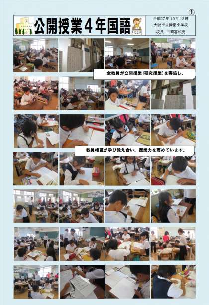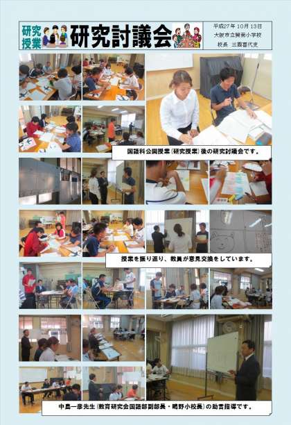 左の配布文書「公開授業(研究授業)」に様子を載せております。ご覧下さい。