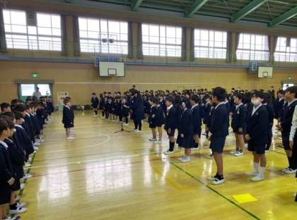 初々しい1年生が講堂へ入場してきました。お兄さんお姉さんが手拍子で歓迎しました。