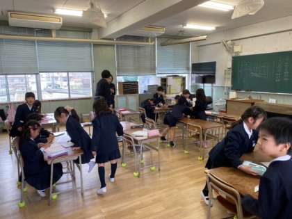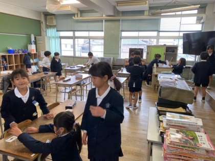運動場での外遊びが好きな2年生の子どもたちも、教室で友だち同士おしゃべりをして楽しんでいます。