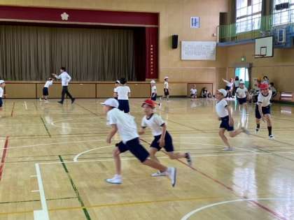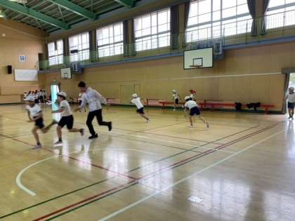 体育館で「ふえおに(増え鬼)」をしました。