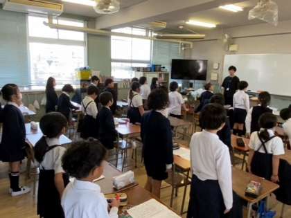 子どもたちと先生が しっかりとあいさつを交わしていました。