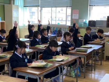 〜教科書の絵を楽しそうに見ながら、子どもたちが、見たこと・思ったこと・感じたことなどを発表していました。