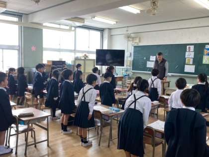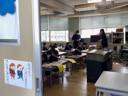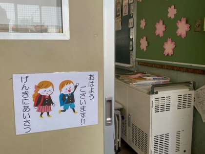 1年生の子どもたちが、担任の先生と、元気よく朝のあいさつをしました。