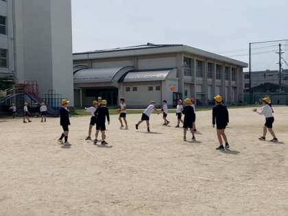 天気が良い時は、子どもたちが運動場でドッジボールや鬼ごっこをして遊んでいます。