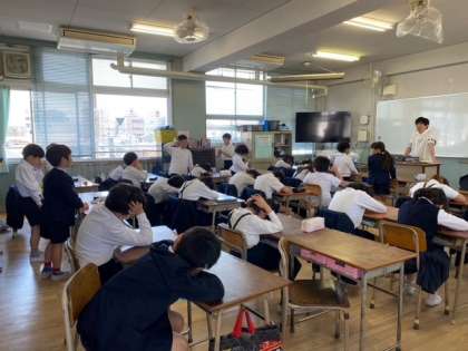 子どもたちが静かに目を閉じて「なりたいヒーロー」について考えています。