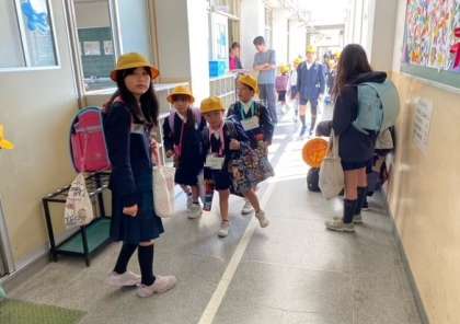 登校班ごとに集まり、集合場所や時間、交通ルールについて確認しました。