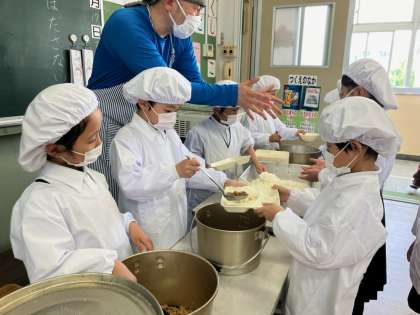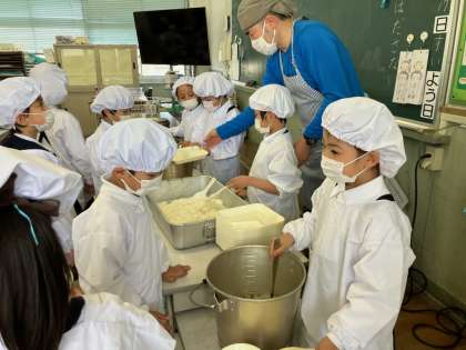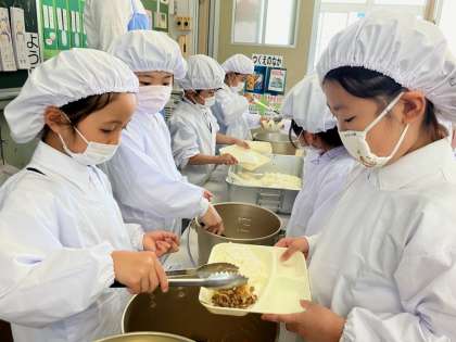 2週間目に入り、給食の準備も素早くなってきました。