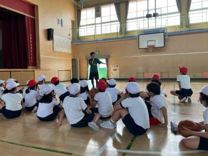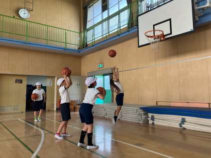 ジャンプをしながら投げるとボールが高く飛ぶことに、気づくことができていました。