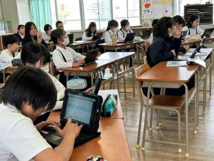 雲の量や動きについて、タブレット端末で調べたことを振り返っていました。
