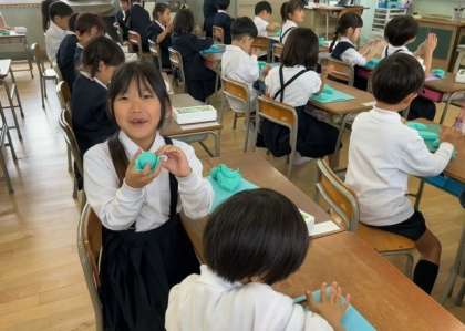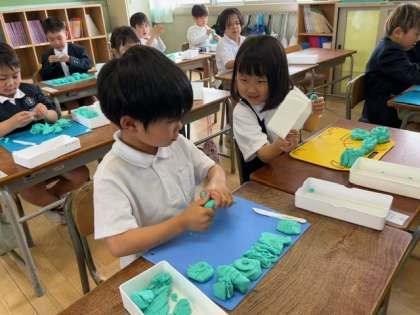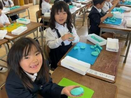 1年生の子どもたちが、図工(図画工作科)の時間に、はじめて「ねんど」を使いました。