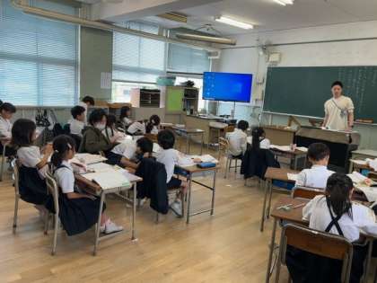 1組の国語科では、よく似た形に気をつけながら、子どもたちが「カタカナの表」を完成させていました。