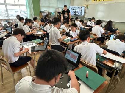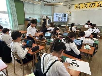 2組の図画工作科では、「切り絵で線対称」をテーマにした作品をつくっていました。