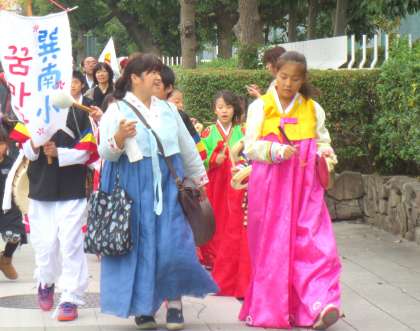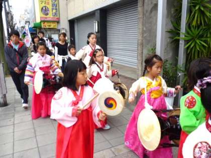 舎利寺小学校から桃谷高等学校まで演奏しながらパレードをしました。たくさんの警備の係の方々のおかげで、安全に元気よくパレードをすることできました。桃谷高等学校に到着し、みんなで「ハイ、ポーズ!」