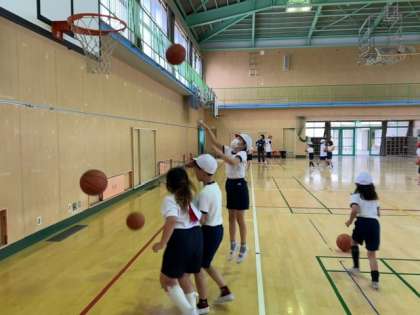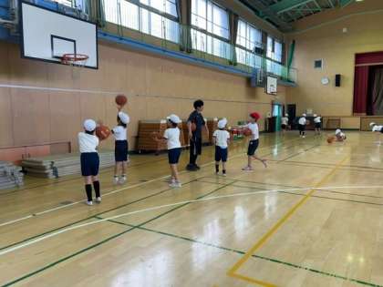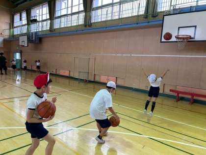 3年生の子どもたちが、体育館でバスケットボールをしていました。