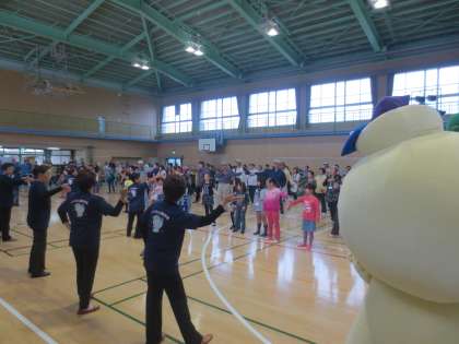 開会式の後いくみんと一緒に、会場の皆で「いくみん体操」をしました。