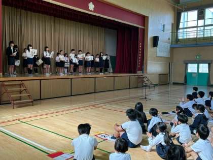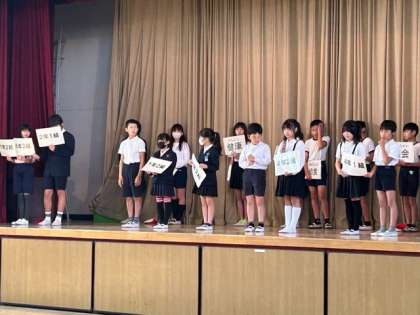 「運動・給食・掲示新聞・健康・飼育栽培・集会・図書・放送」の各委員長から発表がありました。