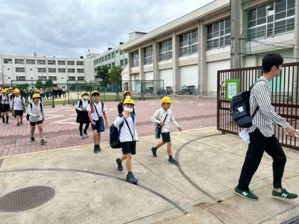 子どもたちが、元気よく楽しそうな表情で出発しました。