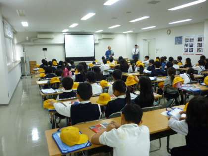会議室でDVDを見て、東部市場の働きや仕組みを学びました。「安心」「安全」「新鮮」な食材の宝庫である東部市場。