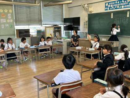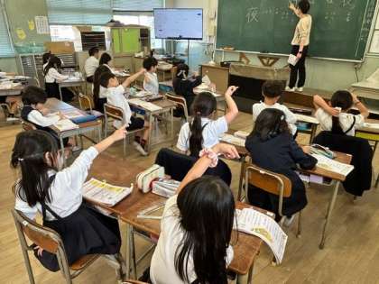 2組の国語科では、子どもたちが漢字ドリルで、「夜」「間」「多」などの漢字を練習しました。