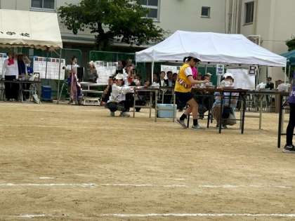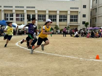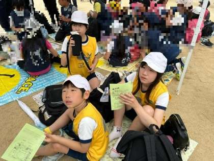小学生・中学生混合のリレーでは、昨年まで本校の国際クラブで活躍していた、新巽中学校の先輩が一緒に走ってくれました。