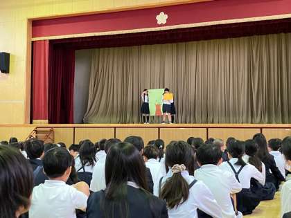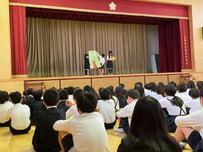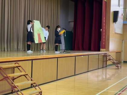 児童会代表から、「思いやりの気持ちを持って、いじめをなくそう」と呼びかけがありました。