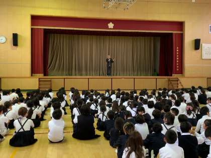 この日ができた経緯について話があり、「いじめはどうしておこるのか、いじめをしない・させない・ゆるさないためにどうすればいいのか」考えようと、問いかけがありました。