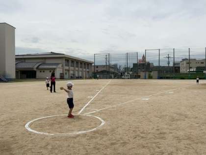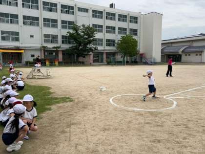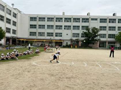 1年生の子どもたちにとって、初めてですが、先生の話をよく聞いて、「ソフトボール投げ」と「50m走」に取り組みました。