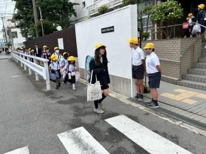 今週は「あいさつ週間」、運動委員会の子どもたちが、門で登校してくる児童に声をかけています。