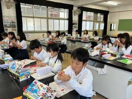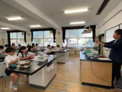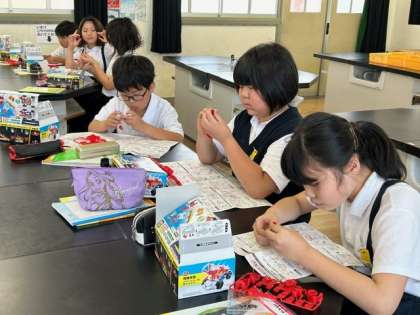実験の準備として、どう線を通したプラグを、モーターに取り付けていました。