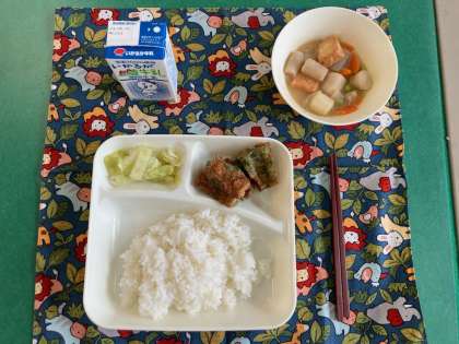 ちくわに青のりの入った衣をつけて油で揚げます。児童に大人気のメニューです。