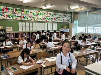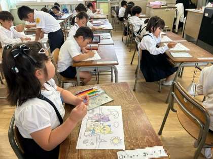 休み時間、1年生の教室では、子どもたちが、「お絵かき」や「本読み」をしていました。
